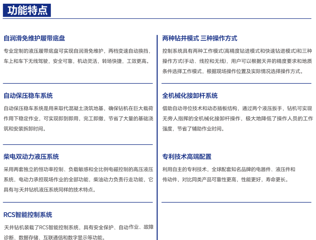 切割槽天井钻机专门用于各类切割槽掘进施工,它可自行下井和转场,不需浇注混凝土基础,转场安装快捷,作业安全高效,其各项技术指标居国际领先水平,完全能够满足我国各类地下矿山切割槽施工工艺需求。